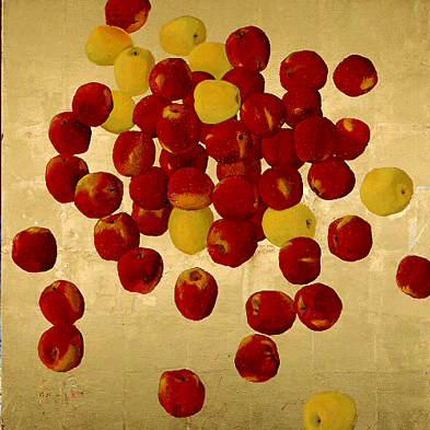 キャンバスにテンペラ、金箔