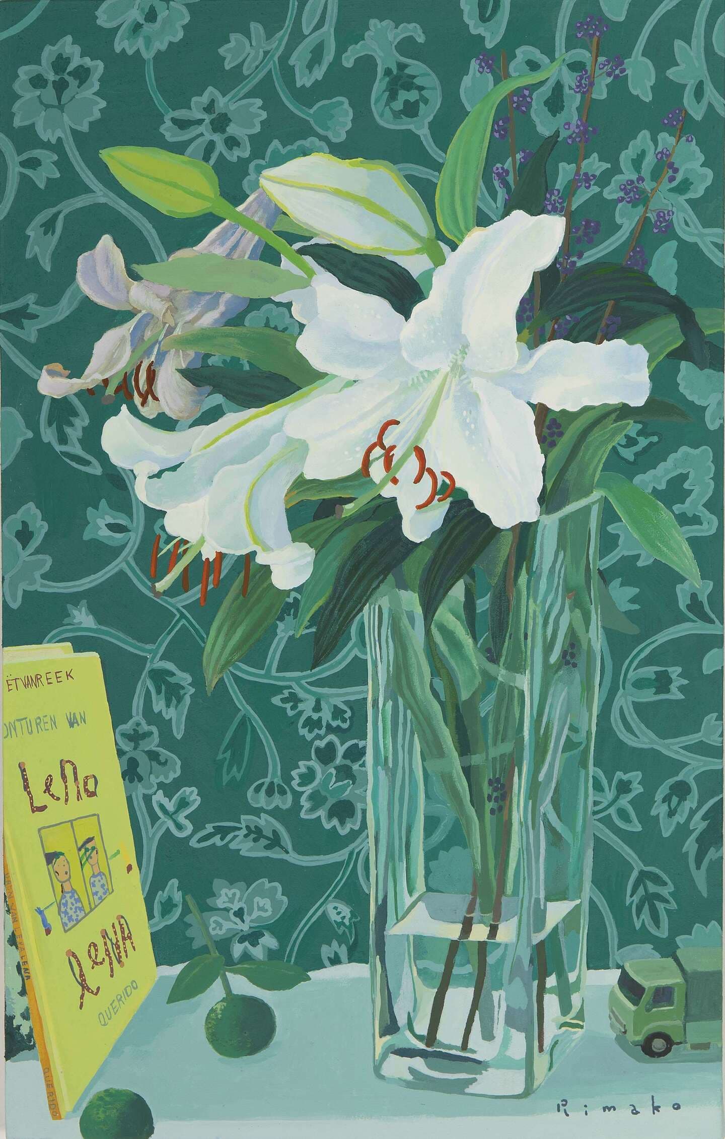 picture book and purple berries